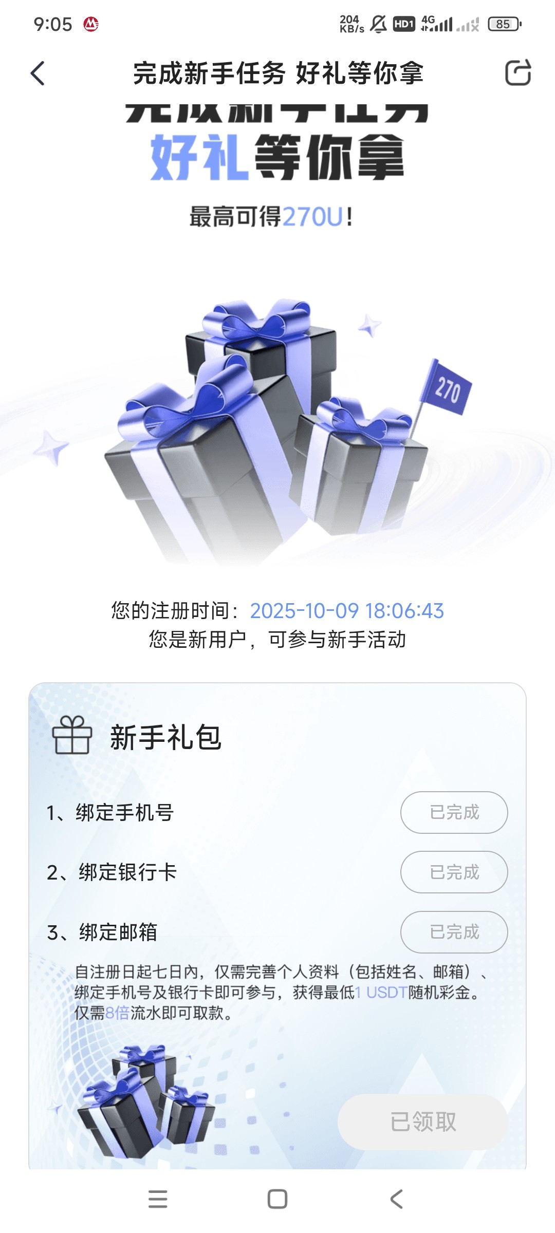 等待到账。