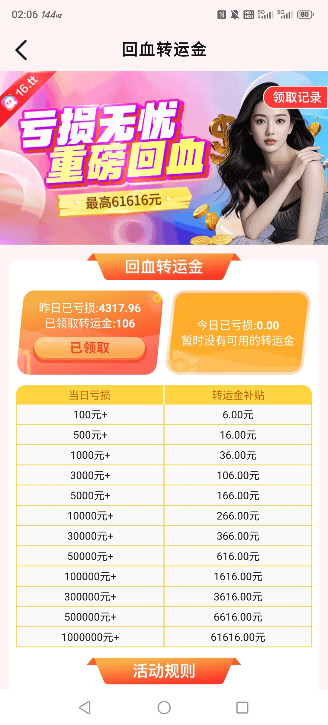 十月二号还是三号来的特邀100+58,那天一下红了1000,然后就一发不可收拾,几乎每天都红一两千,最大一次直接给了个万,赢了钱几乎每天都去歌厅消费,还换了新手机,就在昨天,突然上头,一下输进去5000多,幸好玩了,享受了,还买了手机,奉劝各位老哥,红了先消费,不然你留不住!!!