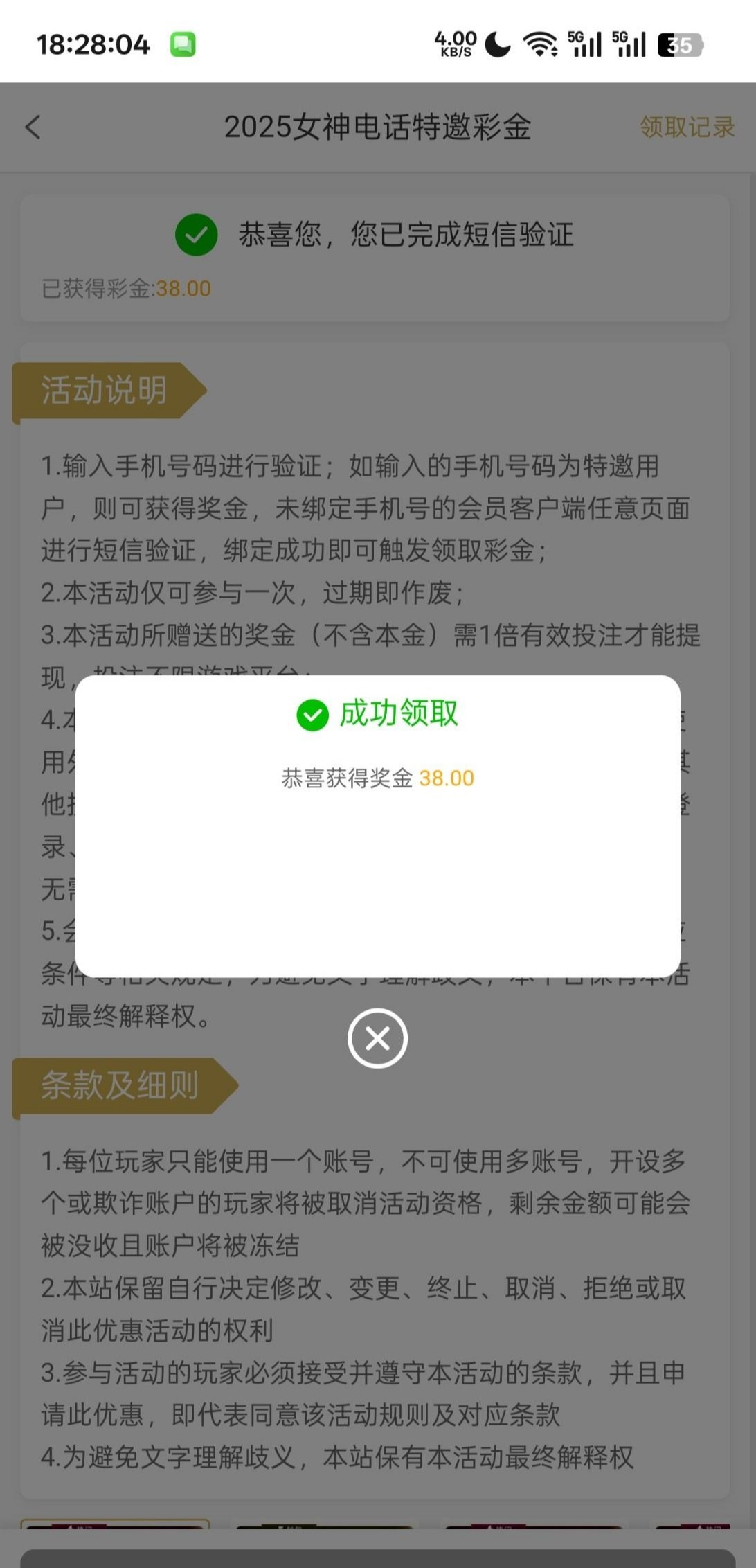 活动里自行领取,名单好像是更新了,我也是两个月前就账号注册,三个手机号当时都不是特邀,今天另一个发了星期六红包我去看,有一个号码领到了38,