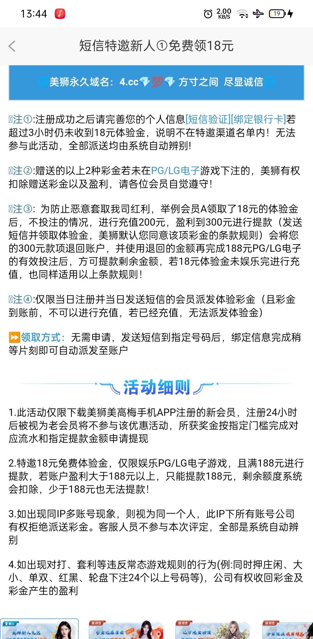 【美高梅】——短信彩金