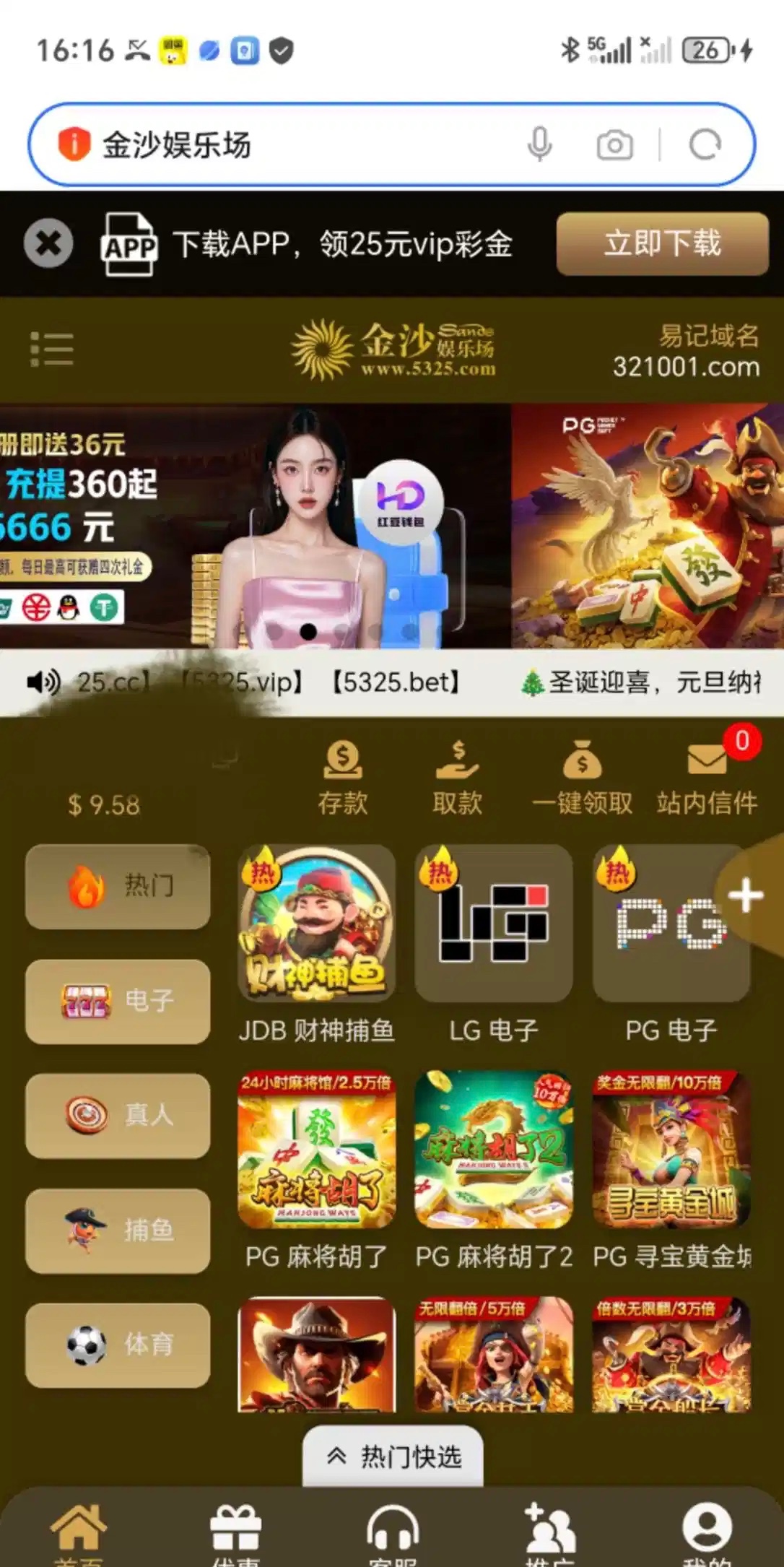 链接5325.com 今天打电话过让我注册领取特邀彩金,登录平台我一看注册过了之前还领取过特邀彩金,我就紧接着看看能不能碰着没想到给了9块彩金