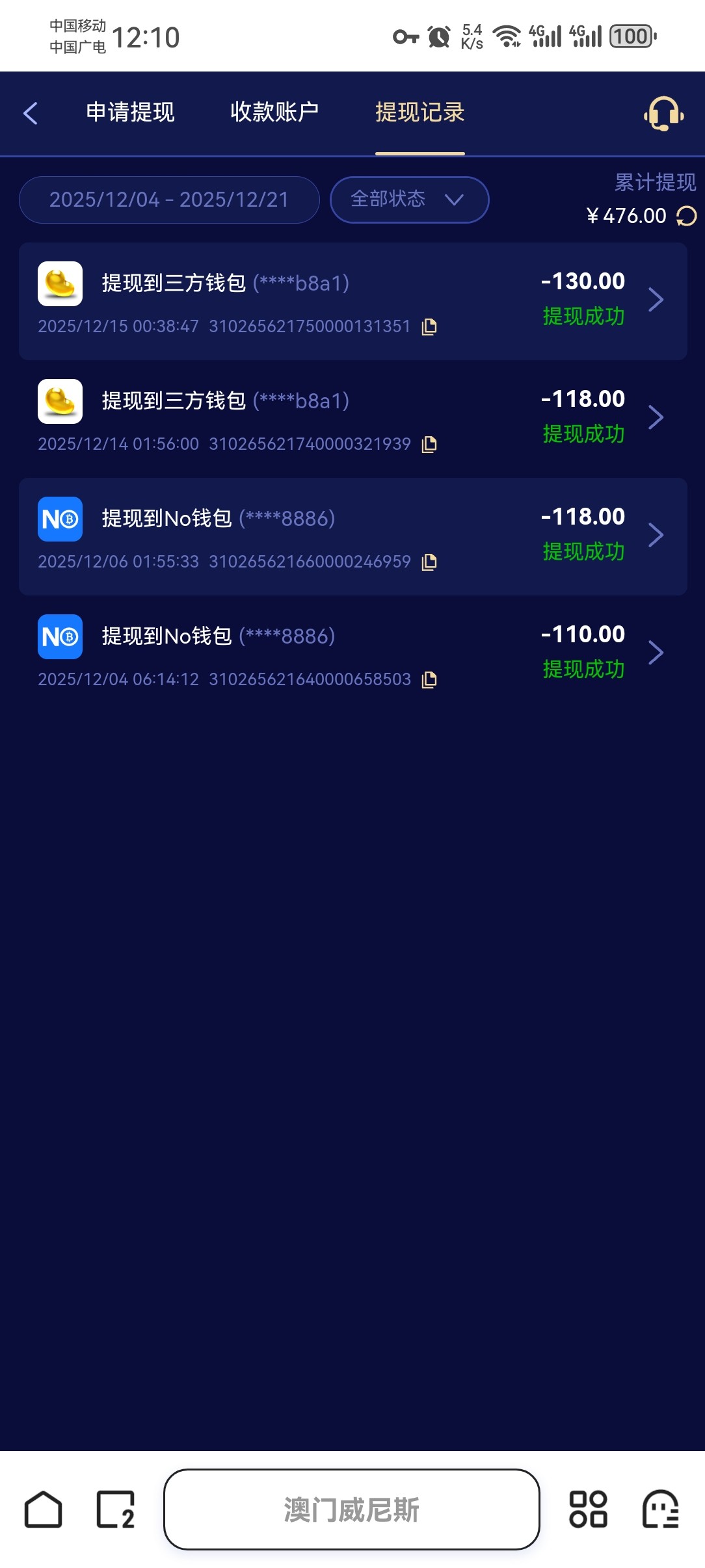所以我说建议回冲几十块,不然天天只打个10+20就会说套利不给申请了