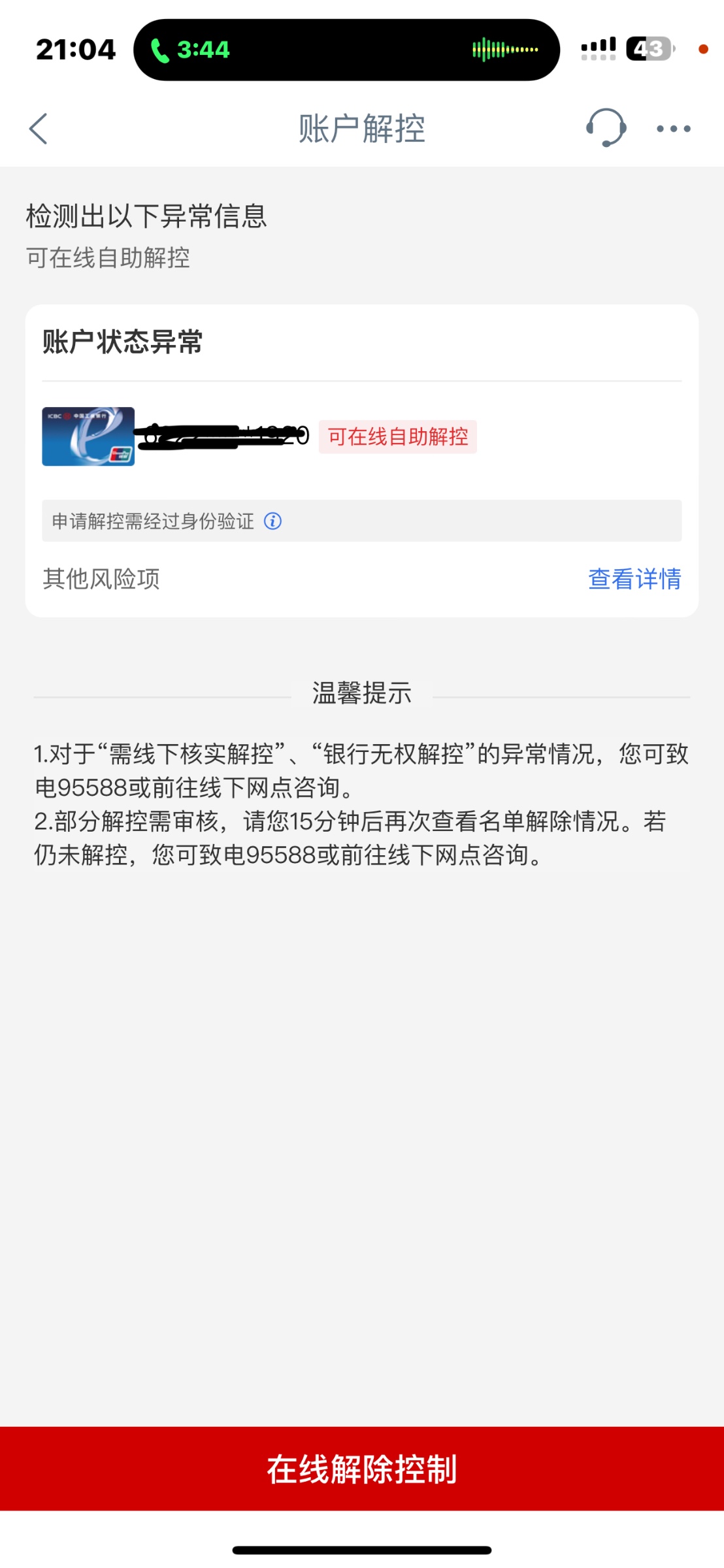 银行卡限制解封问题 [悬赏]金币 50 交流
