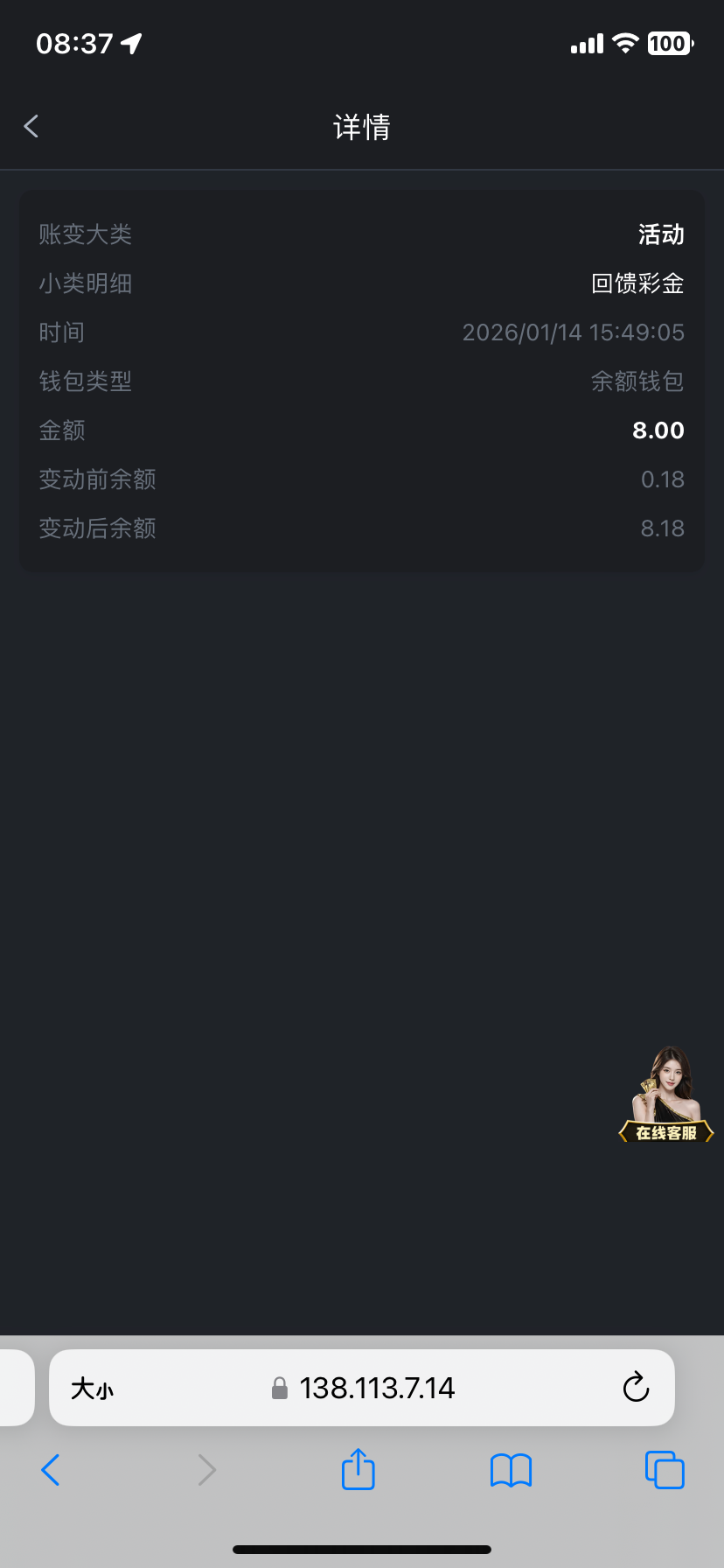 没充值过 打电话来说送了回访彩金 注册过的去看看 网址 001.cc