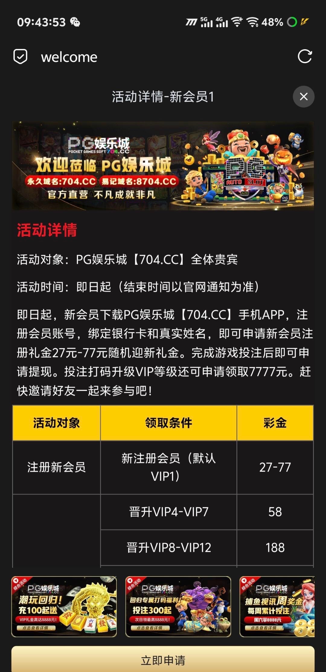 【pg704】注册送27