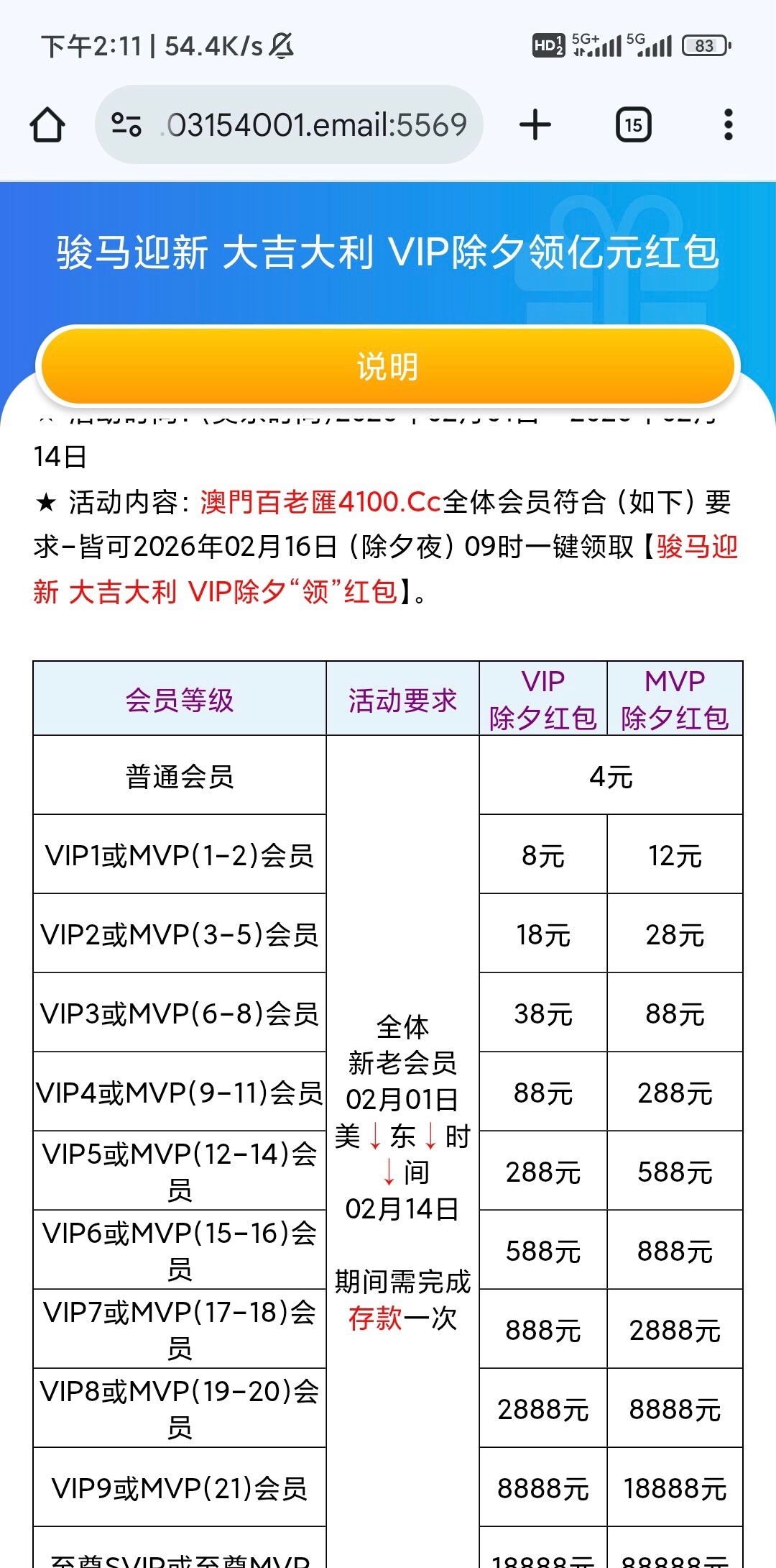 最近有玩过可以去申请一下,除夕回馈要等级,还要最近有一次存款记录,有等级的别忘了4001.com