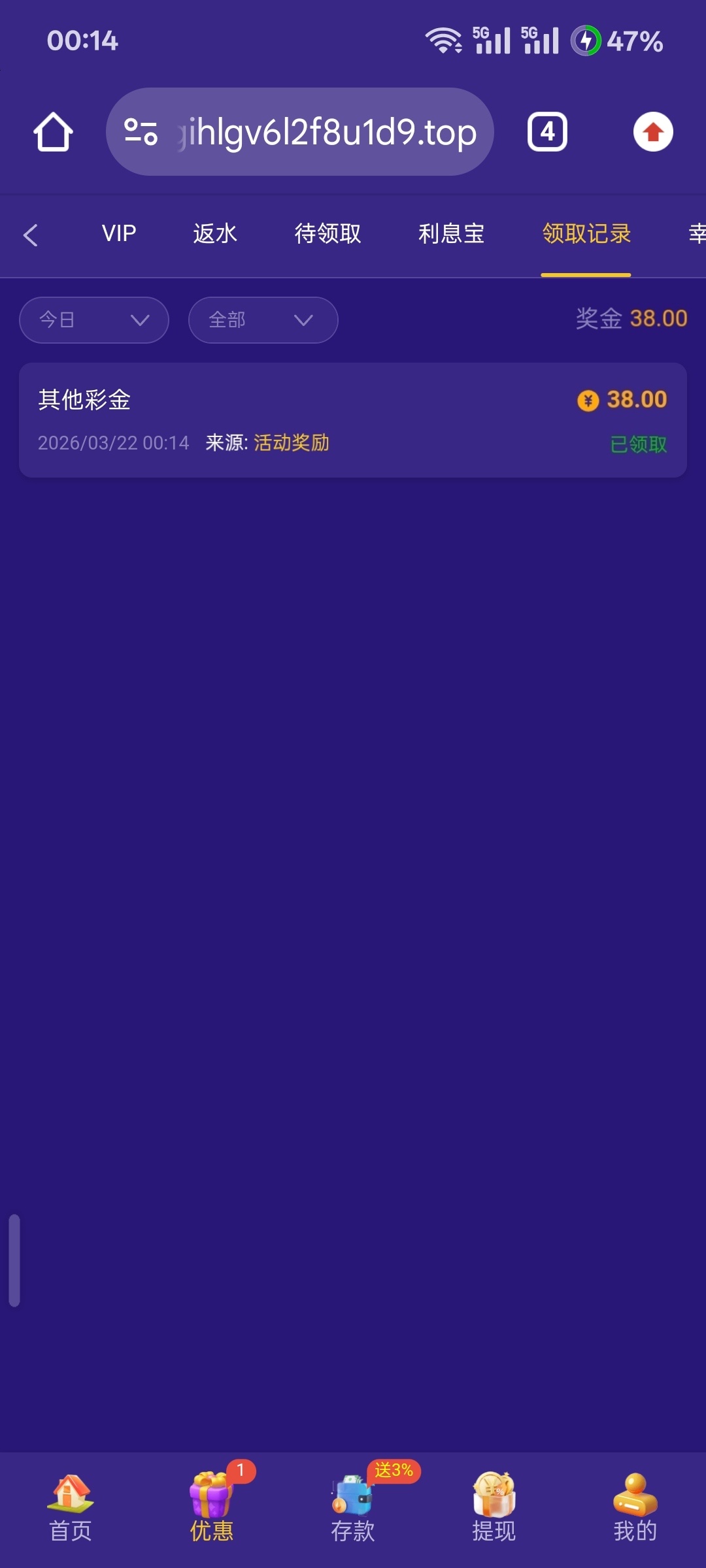欢乐谷回访彩金38,第一次领到,有号的登录看看