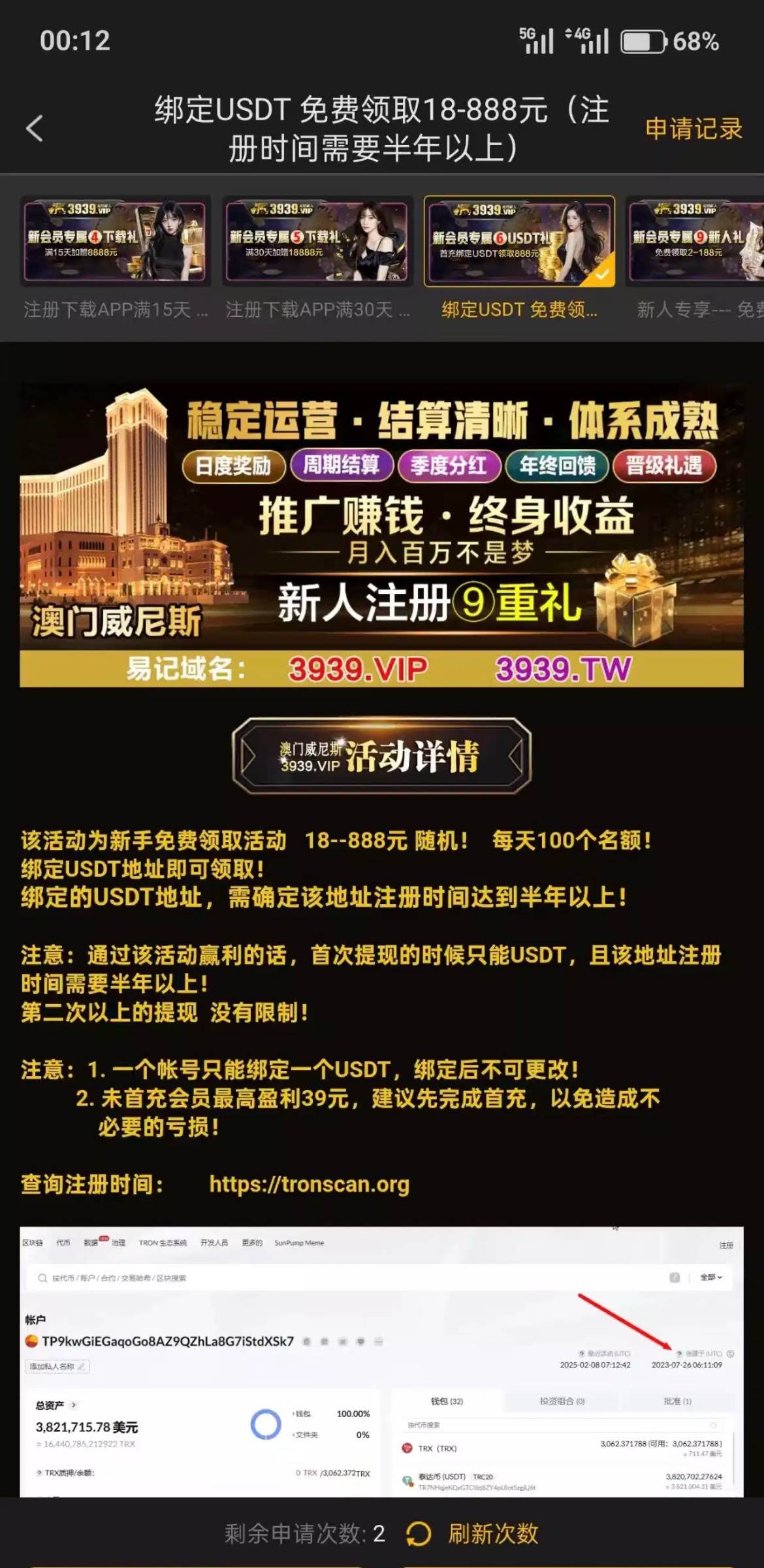 59442.vip,下载注册绑定注册半年以上u地址自助申请18,新人活动6,我几分钟就送了,出款自测我打没了