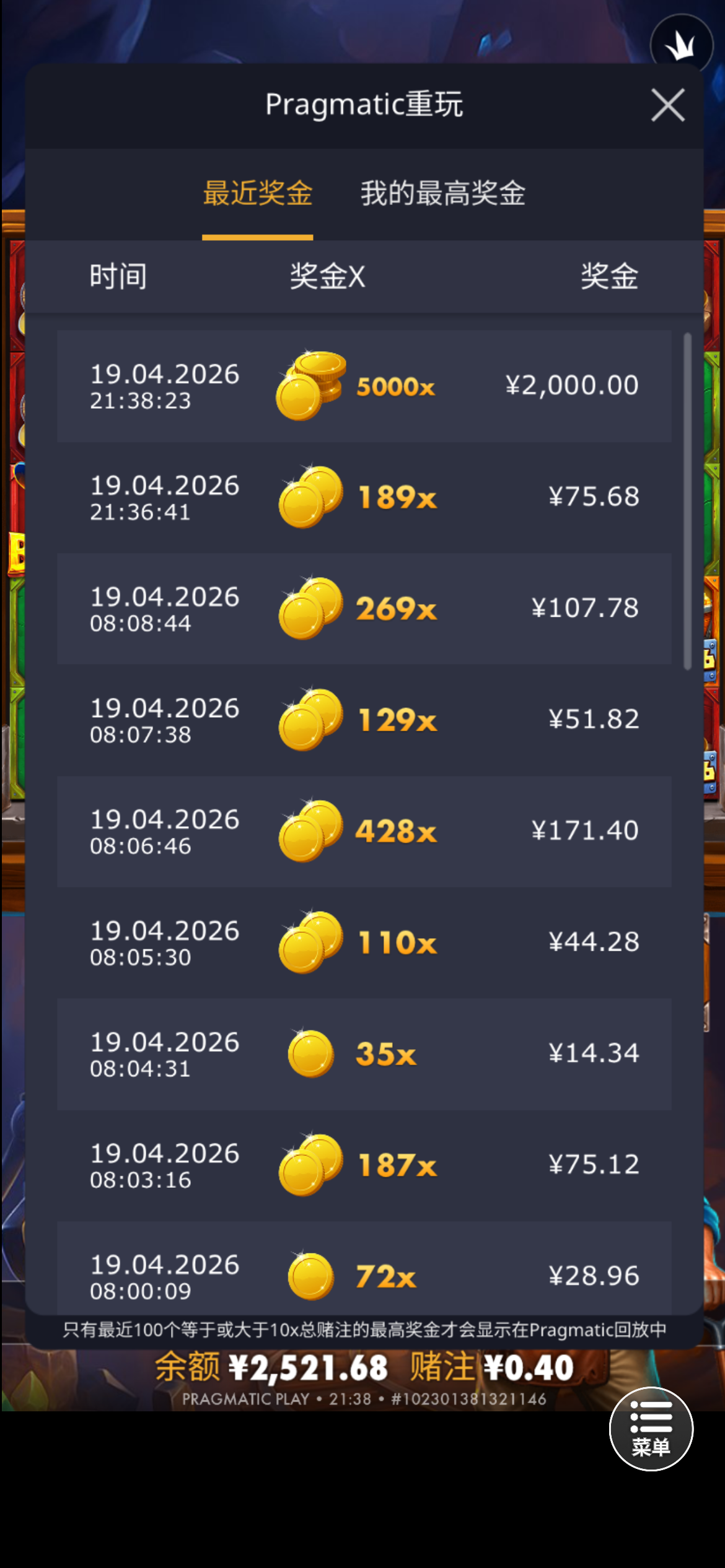 今天莫名其妙爆了两个满倍