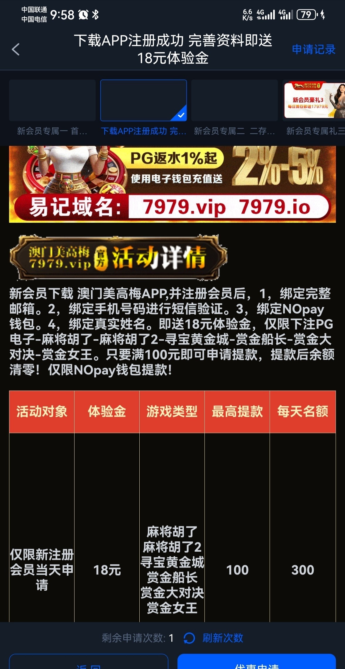 网址 https://39986.vip ,下载APP注册绑定邮箱钱包优惠自助申请,我领到了没打出来